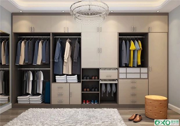 衣帽间的门一般都设计为推拉式或向外对开的折门。这样更能节省空间。衣帽间的门犹如房间的一道风景,玻璃、藤编推拉门等,应最大可能地与装修风格匹配。精良五金件是质量关键一间合格的衣帽间最不能忽视的就是五金件的选用,在选择衣帽间时一定要仔细检查其五金件的使用,抽屉滑轨是否使用的正规厂家生产的,挂衣杆选用的材料是否坚固,另外像裤架、领带屉、抽拉层板的设计都是不能忽视的细节。