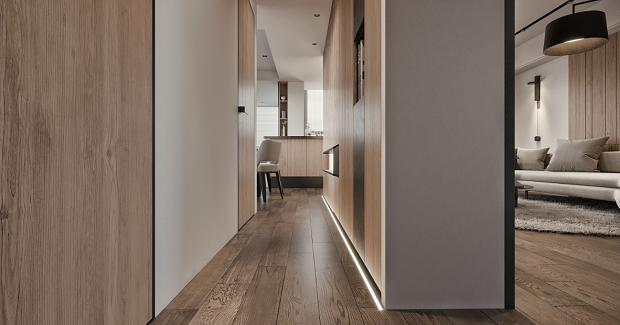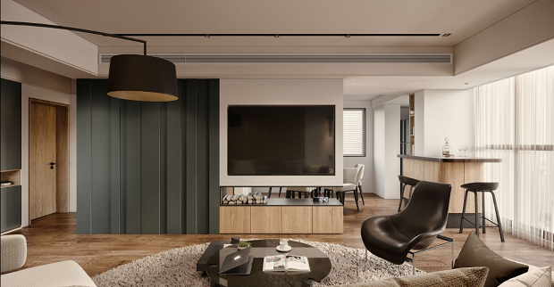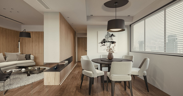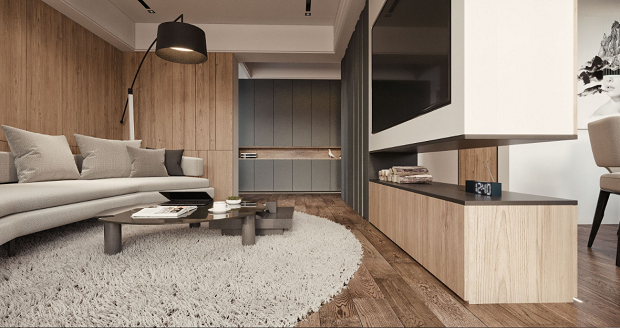 未经修饰的原生态木材,是一种极具生命力的材质。它质感天然、肌理丰富,色泽比较淡雅、舒缓,散发着一种质朴无华的自然韵味,所以一旦在家里大面积地铺展开来,就仿佛让人置身于自然之中,每次回到家都是一次心灵的放松。