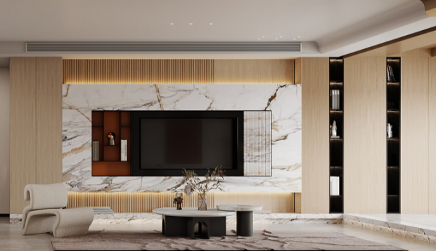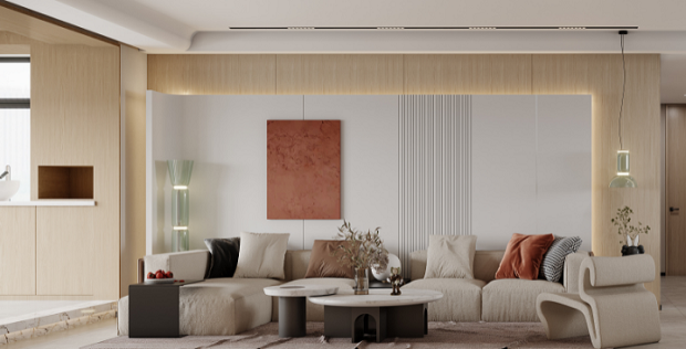 极简的设计,抛弃多余的的元素,用最简练的方式传达主人的个人品味和独特气质,赋予宁静轻松的空间氛围。时尚的电视背景墙面,大理石的纹理如高山流水般洒脱随性,彰显空间大气格调。空间灰白色调分明,整体看上去时尚前卫,线条明朗的布面沙发,不会显得笨重,带来了现代轻奢质感和舒适的体验,每一处细节都值得慢慢品味。